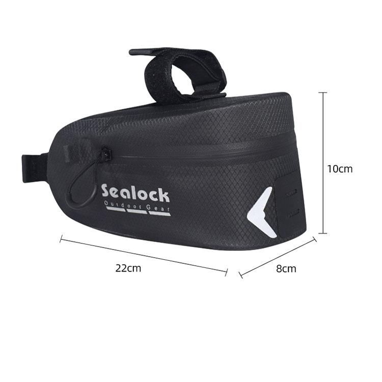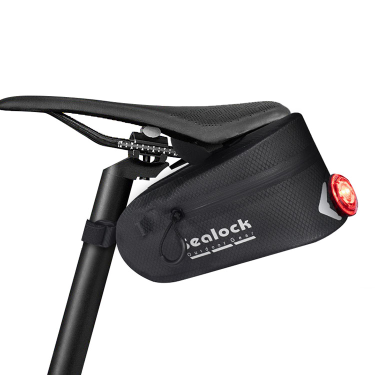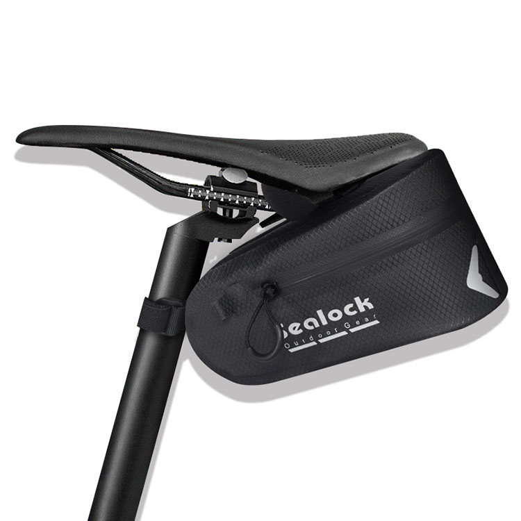 சைக்கிள் சேணம் பை நீர்ப்புகா துணியால் ஆனது மற்றும் ஜிப்பர் வழியாக நீர் நுழைவதைத் தடுக்க டேப் ரிவிட் உள்ளது. ஆனால் சிப்பர்கள் முற்றிலும் நீர்ப்புகா அல்ல, மேலும் தண்ணீர் சீம்களுக்குள் செல்லக்கூடும் என்பதால், நீண்ட நேரம் ஊறவைக்க வேண்டாம்.