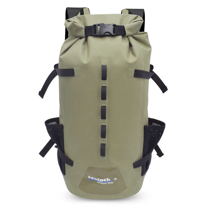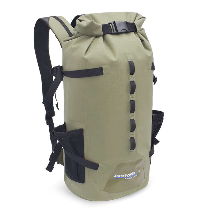 இந்த ரோல் டாப் மூடல் பையுடனும் TPU தொழில்முறை நீர்ப்புகா துணி மூலம் கட்டப்பட்டுள்ளது, மேலும் அதன் மடிப்பு முத்திரை நீர்ப்புகா விளைவை மேம்படுத்துகிறது. கூடுதலாக, வெளிப்புற பொருட்களை இடைநிறுத்துவதற்காக வெளிப்புறத்தில் ஒரு சக்திவாய்ந்த வெளிப்புற தொங்கும் அமைப்பைக் கொண்டுள்ளது. உள்ளே, ஐபாட் பெட்டிகள், சேமிப்பக கண்ணி பாக்கெட்டுகள் மற்றும் சிப்பர்டு பெட்டிகள் உள்ளன, இது உடமைகளை அதிக பகுத்தறிவுள்ள சேமிப்பிற்கு உதவுகிறது.